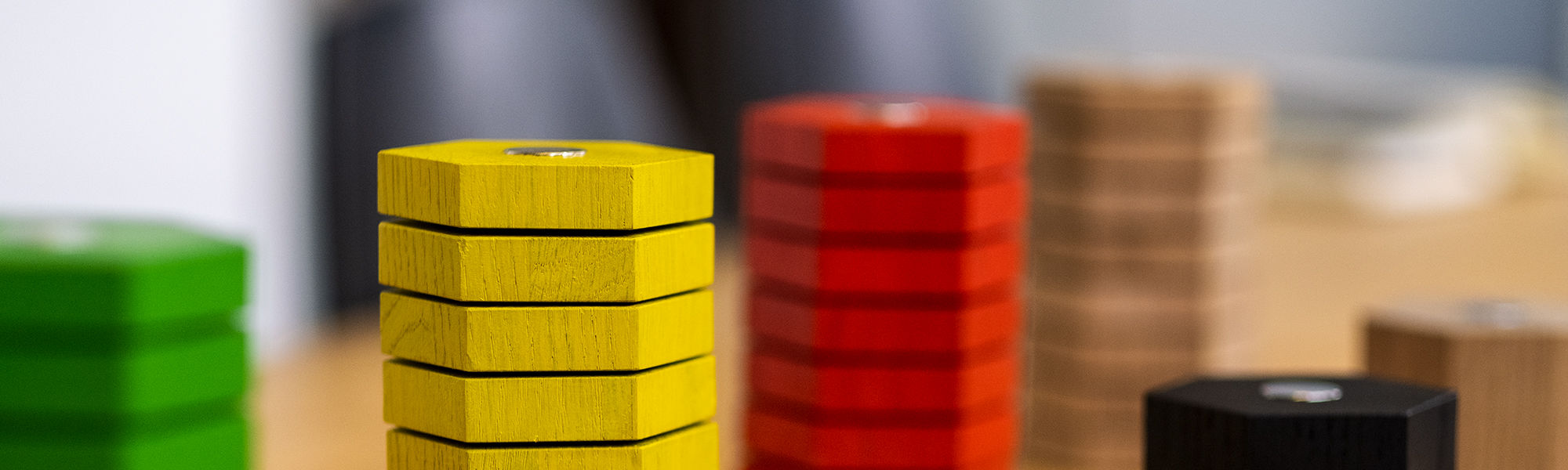 Während zwei der Teilnehmenden mit dem Verkauf von Equipment sowie durch konsequentere Kommunikation im Mahnwesen gegenüber Schuldnern die Liquidität zu steigern glaubten, griff der dritte Teilnehmer zur freien Ressource und stellte sie in der nachfolgenden Argumentationsrunde anhand seines Turmes als die Ressource Mitarbeiter vor.