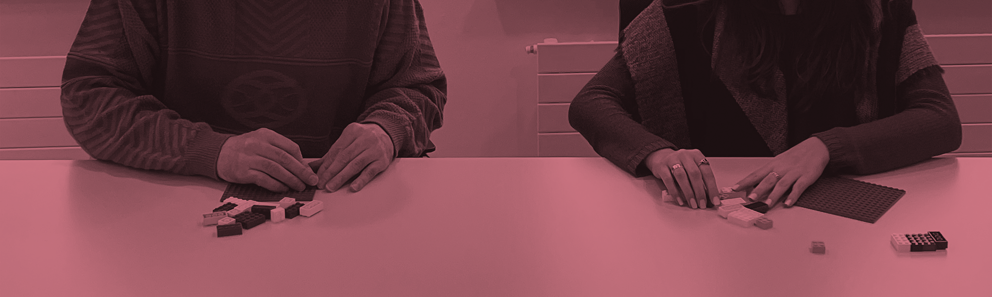 Jetzt versucht die sehende Person, die Figur nachzubauen. Dafür stehen fünf bis zehn Minuten zur Verfügung. Die sich dabei ergebenden Gespräche, die auch Hilfestellungen beinhalten können, sind für die Methode wichtig.