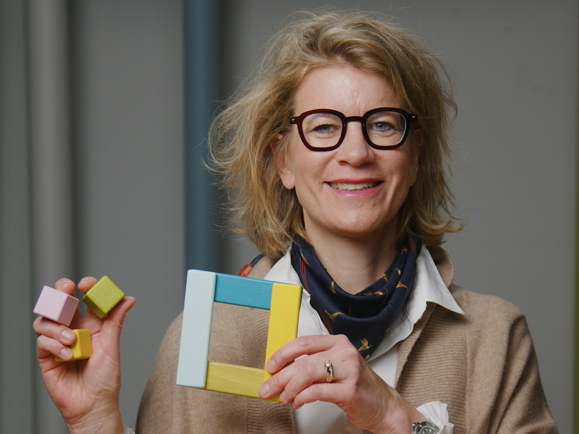 Mit Hilfe eines physischen Holzspielbrettes mit einer eingravierten Matrix und dem Einsatz von verschiedenen Bausteinen (Plättchen, Zylinder etc.) können die vier Dimensionen leicht verständlich visualisiert werden.