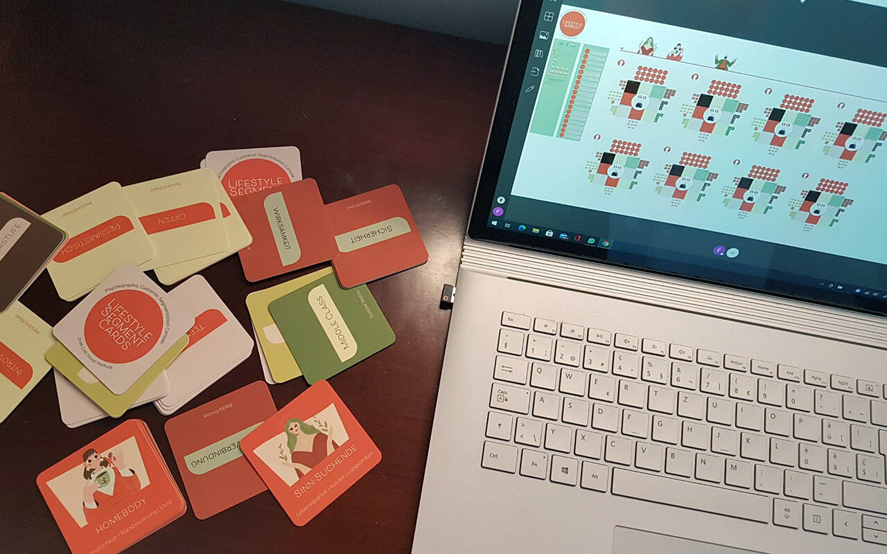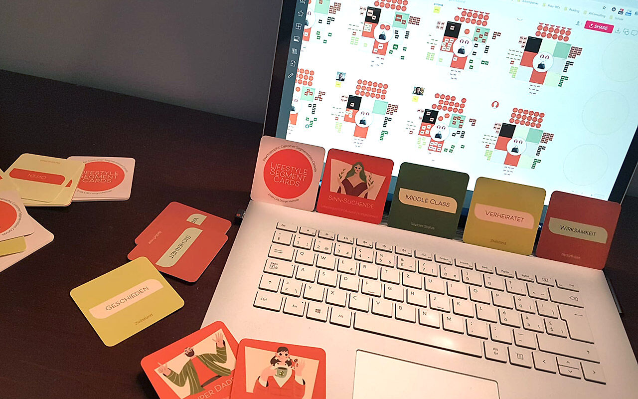 Der*die Facilitator*in verteilt die Lifestyle Cards, ein Set pro teilnehmende Person, sowie den Lifestyle Canvas. Die 18 Lifestyles werden kurz, einer nach dem anderen, erklärt und besprochen, ebenso die ergänzenden demographischen Dimensionen.