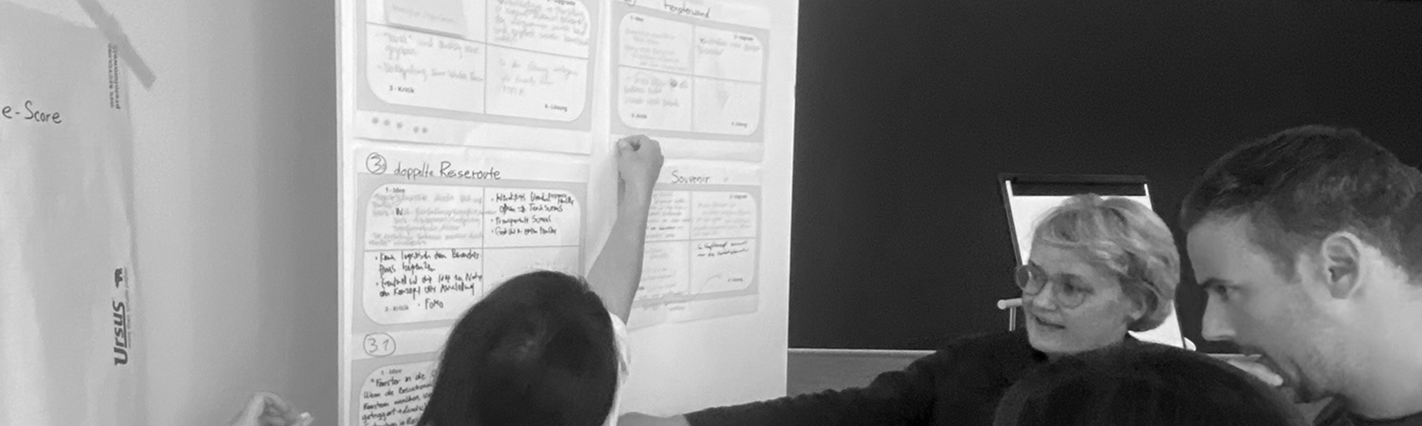 Mit dem Team der Auftraggeber*in sollen Ansätze für einen Vermittlungsraum für Museumsbesucher*innen entwickelt werden, der Szenografie und Inhalt der Ausstellung reflektiert und vertieft. Dabei sollen in möglichst kurzer Zeit verschiedene Ideen für Konzepte generiert werden und die Teilnehmer*innen sollen Ownership für diese Konzepte entwickeln. Nachträgliche Änderungswünsche seitens der Auftraggeberin werden so minimiert.