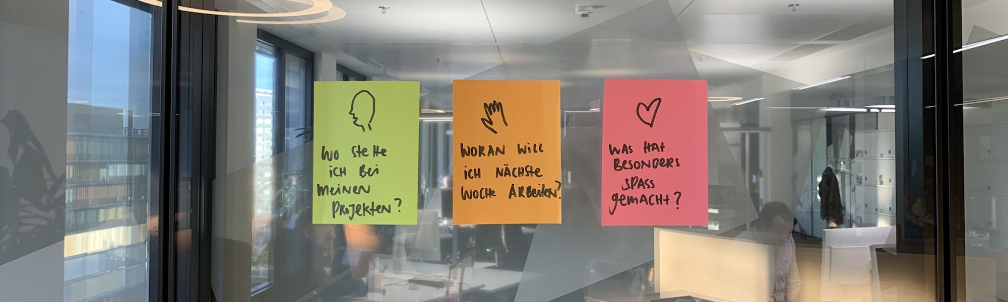 Bei einigen Meetings habe ich die Methode als Gesprächsleitfaden im Hintergrund behalten und bei anderen Meetings ist die Methode konkret thematisiert und als solche eingesetzt worden.