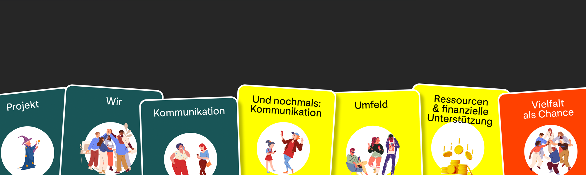 Am Workshop wurden die verschiedenen Fragen und Goldenen Regeln in Form eines ausgedruckten einfachen Flyers erläutert. Die Moderatorinnen machten die Beobachtung, dass die einfach formulierten Punkte durchaus auf Interesse stiessen, es wurde immer wieder genickt und es entstand der Eindruck, dass gewisse Kernpunkte bei der diversen Gruppe durchaus eine positive Unterstützung sein können. Allerdings schien eine stärkere Strukturierung und Vereinfachung nötig und vor allem, das spielerische Element fehlte dem Blatt Papier völlig. Darum entstanden in der Weiterentwicklung die Magic Cards, welche mit der magischen Zahl 7 augenzwinkernd das Zaubern mit dem Kartenset aufnehmen. Dieses kann im weiteren Verlauf des Projektes von den verschiedenen Personen je nach Bedarf wieder ins Spiel gebracht werden, da alle die Magic Cards am Ende des Kick-off Workshops erhalten.