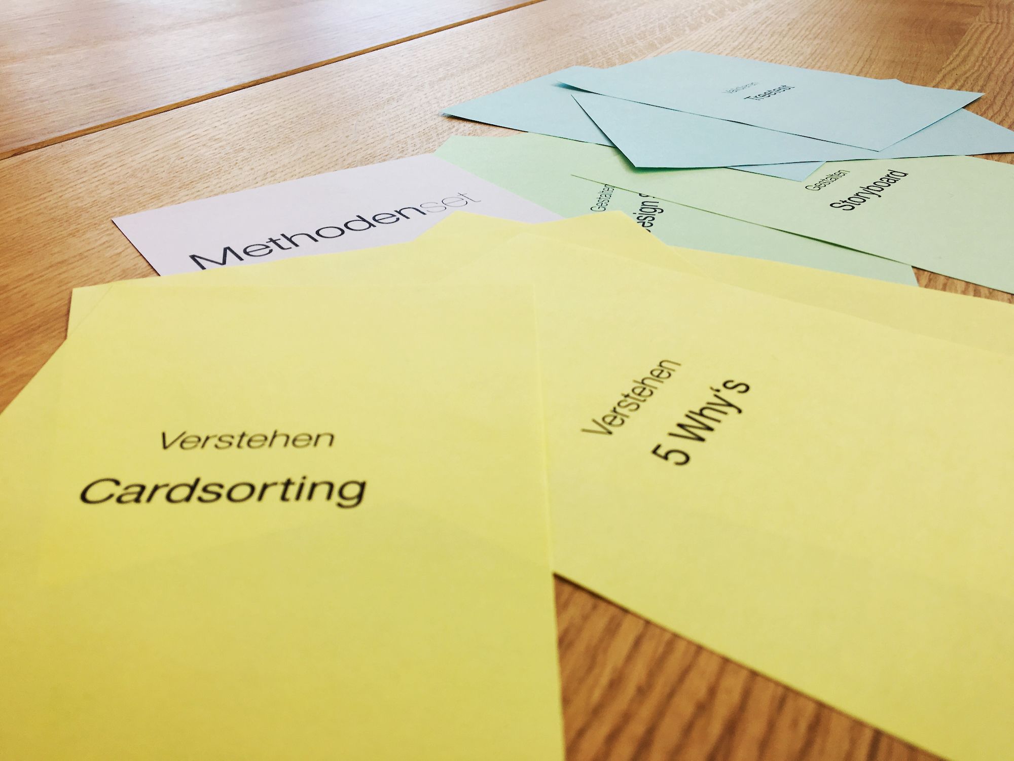 Von der Idee bis zum ersten Prototyp wurden unter anderem folgende Methoden eingesetzt: Interview, Brainstorming, Konkurrenzanalyse, Kopfkino Screening und Prototyping. Das Resultat dieser Vorgehensweise dient als Basis für den ersten Probelauf des Methodensets.