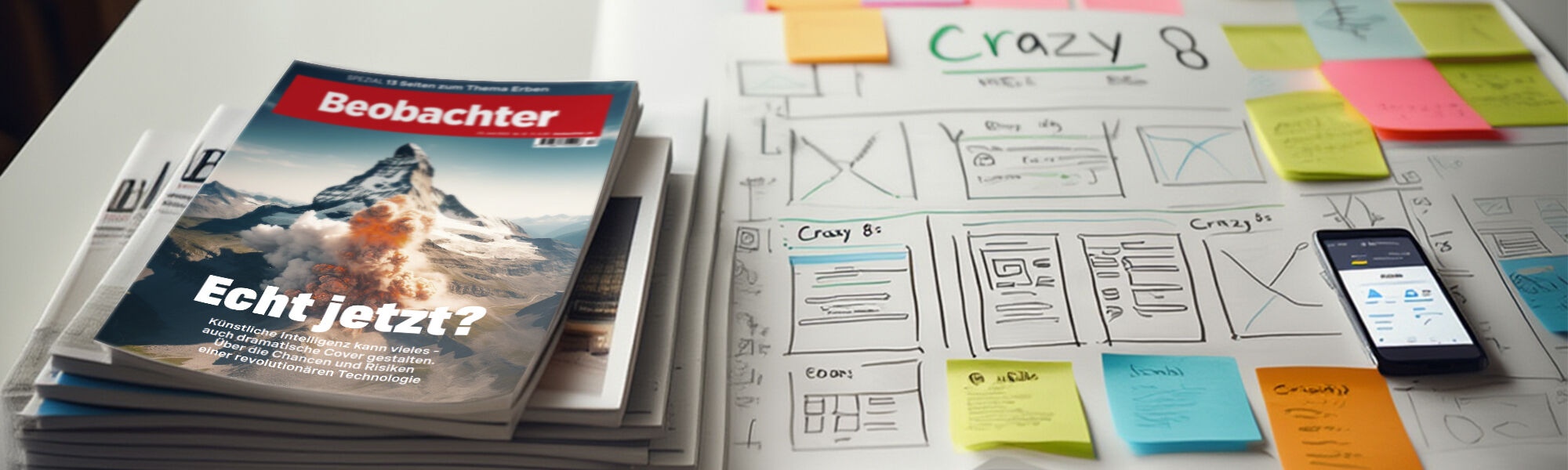 Das Warm-up hat seinen Zweck erfüllt und löste bei den Teilnehmenden sogleich Lust auf das Experimentieren aus. Einige Ideen aus der Crazy-8s-Methode werden nun weiterentwickelt, um der Leserschaft mehr Interaktionsmöglichkeiten zu bieten. Ausserdem stehen weitere Workshops an, die den Austausch und die Experimentierfreudigkeit fördern sollen.