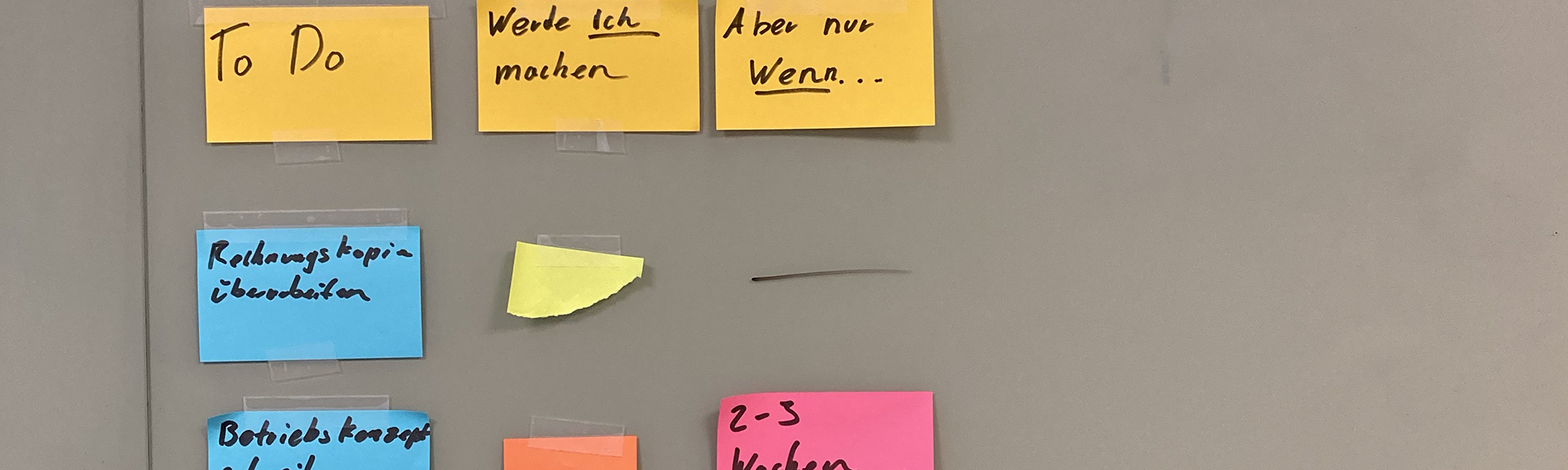 Die wichtigsten Punkte für die Erstellung des Projektantrags konnten zusammengetragen werden und es wurde definiert, welche Fragen noch zu klären sind und wer diese weiter bearbeiten wird. Die Teilnehmenden waren froh über den Rahmen, den die Methode bot, da sie mit klaren Aufträgen aus dem Workshop gingen und wussten, was in den nächsten Monaten auf sie zukommt.