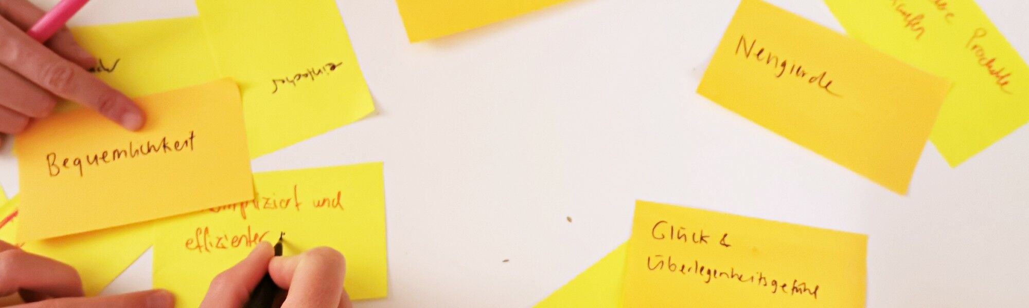 Die Diskussion neben den Post-Its ist mindestens so aufschlussreich wie die Post-Its selber – in einem professionellen Kontext empfiehlt es sich, eine Zuhörerin dabei zu haben, die diese Aussagen protokolliert.